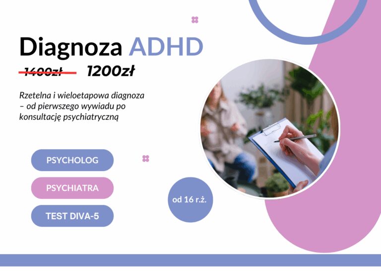 Nieleczone lub niezdiagnozowane ADHD może negatywnie wpływać na jakość życia, edukację, pracę oraz zdrowie psychiczne. Dlatego tak ważna jest profesjonalna diagnoza ADHD, która pozwala trafnie zidentyfikować zaburzenie oraz zaplanować odpowiednie formy wsparcia – psychologicznego, terapeutycznego i psychiatrycznego.